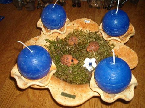 Schale mit 4 festen Halterungen für kleine Teelichter oder Kugelkerzen. Im Lieferumfang enthalten: 3 kleine Tiere nach Wunsch, 1 Blüte, 4 Teelichter, etwas Moos. 19,00 Euro zurück