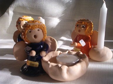 Engel mit Kerzen Engel mit Teelicht 9,50 Euro Engel mit Baumkerze 9,00 Euro Die Engel sind ca. 9 bis 10 cm hoch