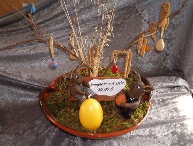Dekoschale mit Hasen komplett mit Deko 25,00 Euro zurück